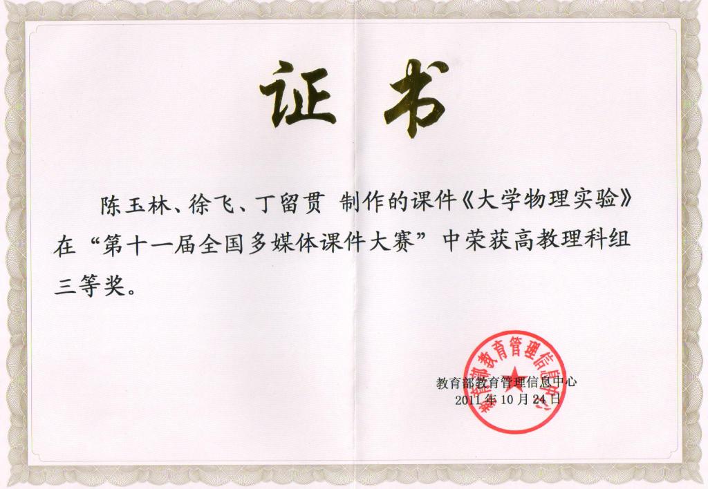 2011年教育部“第十一届全国多媒体课件大赛”高教理科组三等奖